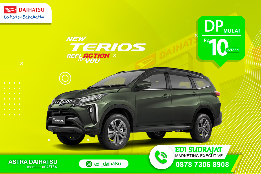 Beralih ke dimensi. Terios Baru memiliki ukuran yang lebih panjang dan tinggi dibanding model sebelumnya. All New Terios memiliki panjang 4.435mm x lebar 1.695mm x tinggi 1.705mm. Sementara itu, jarak sumbu roda mencapai 2.685mm dengan jarak ketinggian dari tanah 220mm.